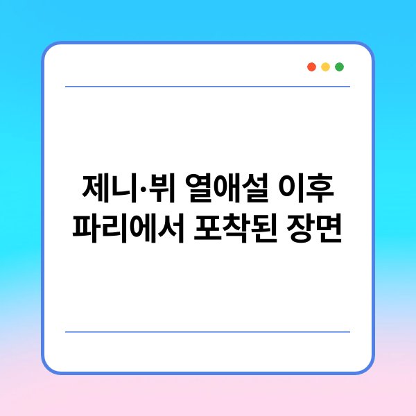 최근 제니와 뷔의 열애설이 화제가 되면서, 이들의 새로운 모습이 많은 사람들의 관심을 받고 있습니다. 두 사람은 최근 파리에서 포착되었으며, 이 장면은 팬들과 대중의 이목을 집중시키는 계기가 되었습니다. 열애설이 사실인지 여부에 대한 궁금증이 커지는 가운데, 이들의 사생활과 공개된 장면에 대한 다양한 반응이 이어지고 있습니다. 본문에서는 제니와 뷔의 파리에서의 모습과 그에 따른 대중의 반응을 정리했습니다.